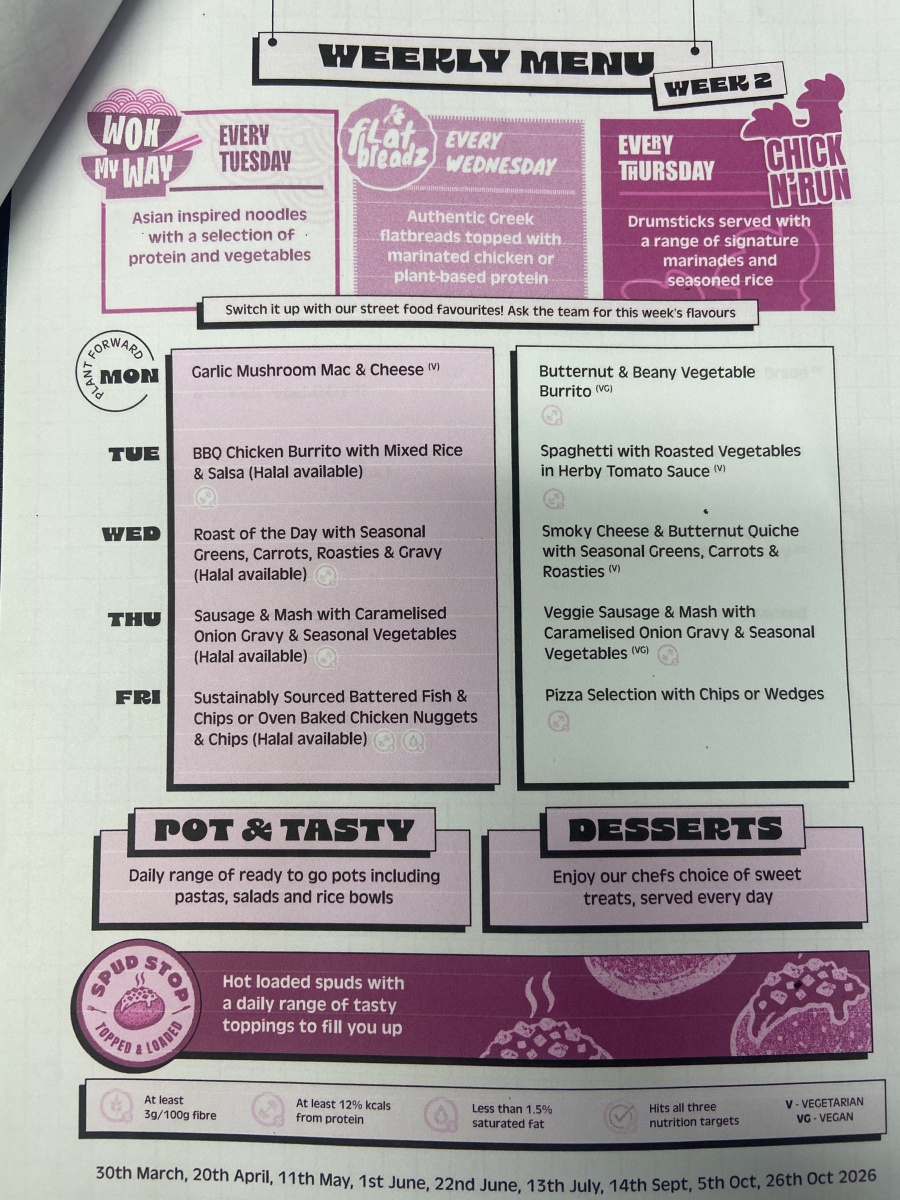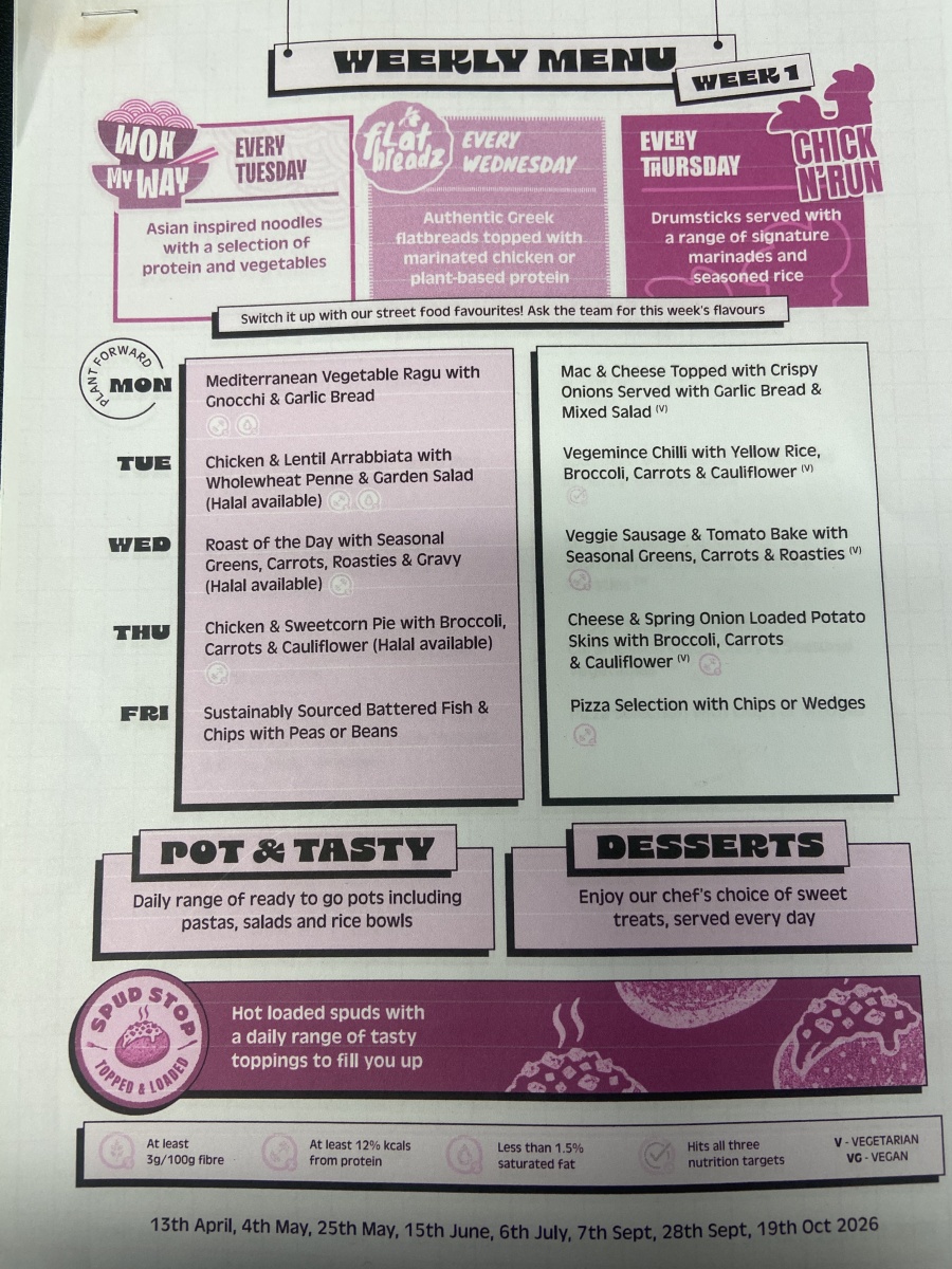 Spring/Summer menus start after the Easter holidays, on Mon 13/04/26
